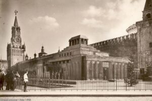 Вся работа по сооружению Мавзолея продолжалась около трех дней; строители удалились с Красной площади в момент, когда уже на нее вступали войска, участвовавшие в похоронах великого вождя».