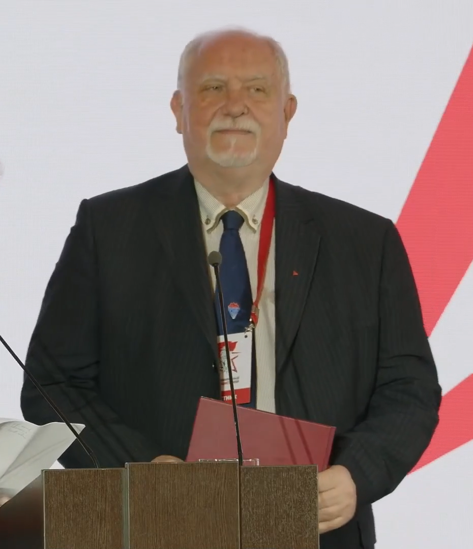 Антифашист Вилмош Ханти – президент Международной федерации борцов сопротивления, – подойдя к трибуне, горячо поздравил с 80-летием Великой Победы форумчан, персонально Г.А. Зюганова, Компартию Российской Федерации, собравшую накануне 80-летнего юбилея антифашистов со всех континентов планеты. В. Ханти рассказал: