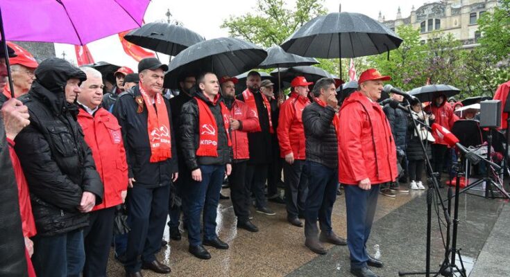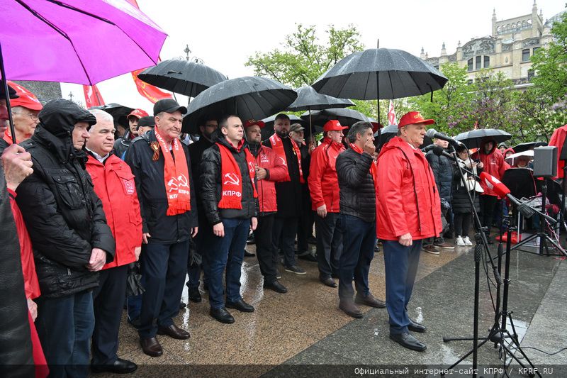 С утра зарядил дождь… Но, традиционная Маёвка прошла на подъёме. К памятнику Карлу Марксу пришли руководители КПРФ, — председатель ЦК КПРФ, руководитель фракции КПРФ в Госдуме Геннадий Андреевич Зюганов, его заместители Владимир Кашин, Юрий Афонин, Дмитрий Новиков, депутаты Госдумы фракции КПРФ, активисты партийных отделений из Подмосковья, других городов РФ. Под красными знамёнами Победы, КПРФ, СССР собрались представители многих общественных движений – «Надежда России», В поддержку армии, военной науки и флота, комсомольцы, «Левый фронт», «Русский лад», «Дети войны»…