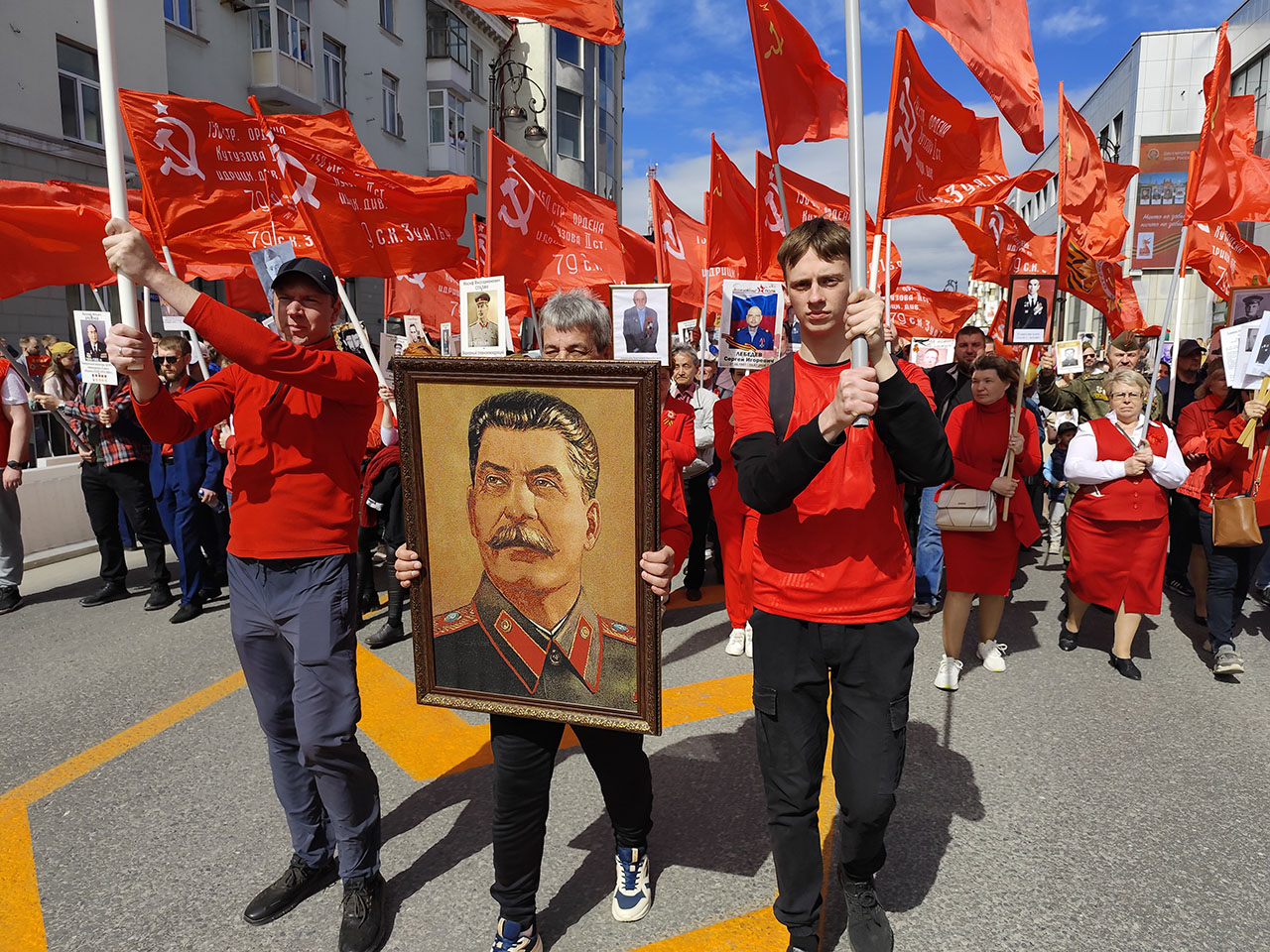 Люди, стоявшие вдоль улицы Республики, горячо приветствовали колонну: «Да здравствует товарищ Сталин!», а ответное протяжное «Ура!» сливалось с мелодиями военных лет, что лились из динамиков, которые активисты КПРФ несли в колонне – «Катюша», «Священная война», «День Победы»… Каждая нота пробуждала в душах гордость и благодарность.