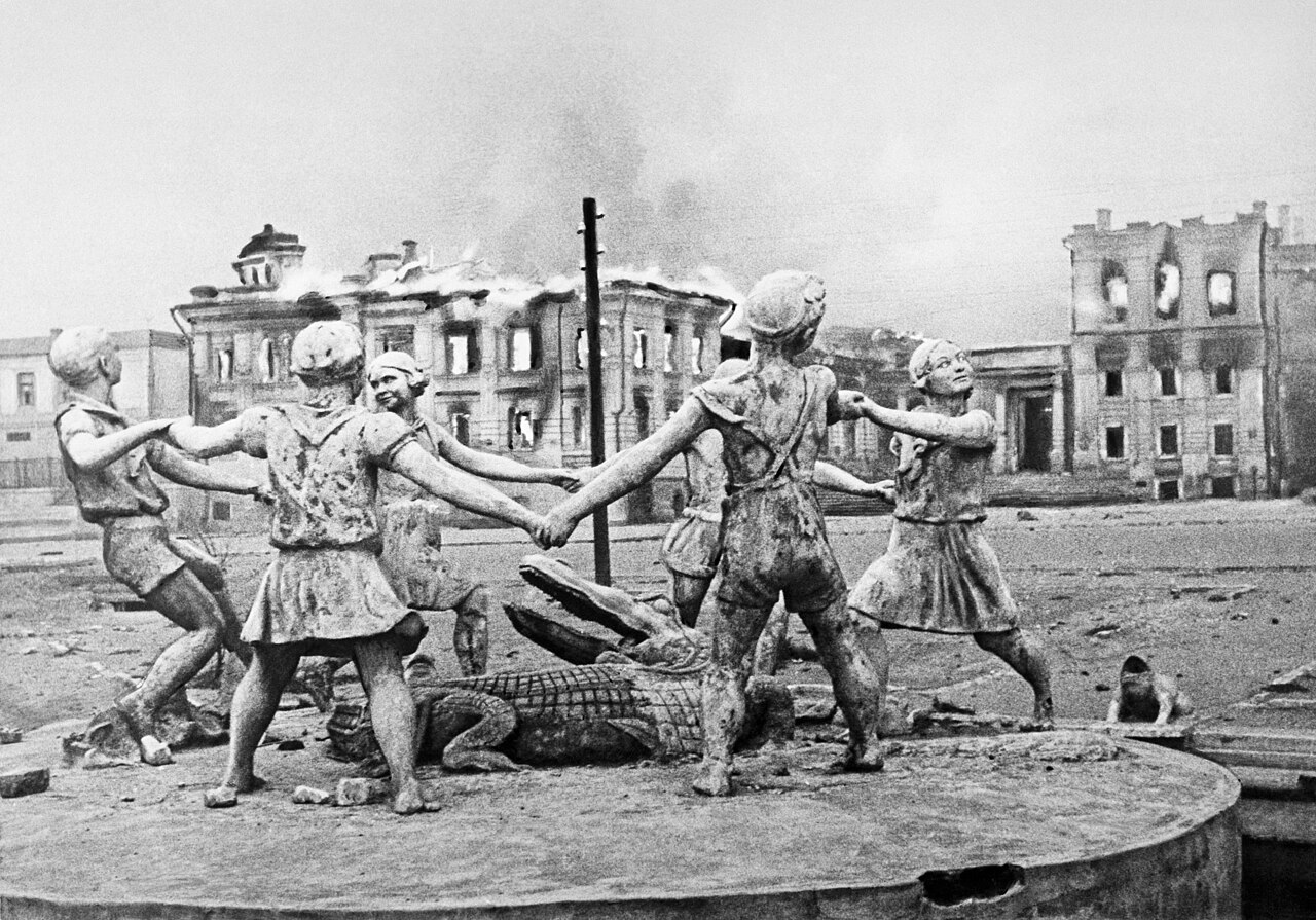 На фото: Фонтан «Детский хоровод» в Сталинграде после налета немецкой авиации. Из открытых источников.