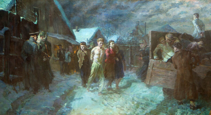 На фото: Непокорённые. Худ. М.Л. Вольштейн, Ф.Т. Костенко, А.А. Фильберт, 1947 г. Из открытых источников