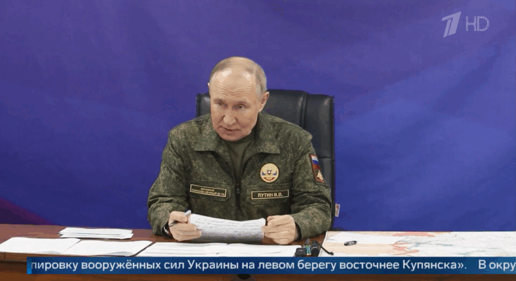 В ходе совещания Президента России Владимира Путина с начальником Генерального штаба ВС РФ Валерием Герасимовым и командующими группировками войск в зоне проведения СВО Верховному Главнокомандующему было подробно доложено о ситуации на линии боевого соприкосновения, в частности, по купянскому и красноармейскому направлениям.
