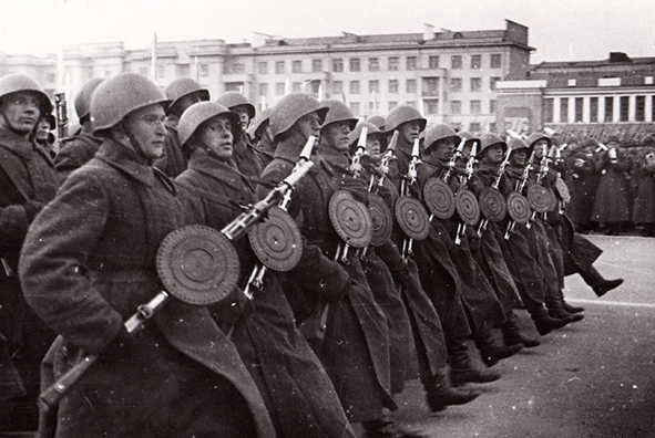 …Утро в день парада в Куйбышеве оказалось морозным и пасмурным. На главной площади города выстроились войска. На трибуну поднялись всесоюзный староста Михаил Калинин, председатель комиссии партийного контроля Андрей Андреев, глава профсоюзов Николай Шверник, председатель Госплана Николай Вознесенский и другие советские руководители.