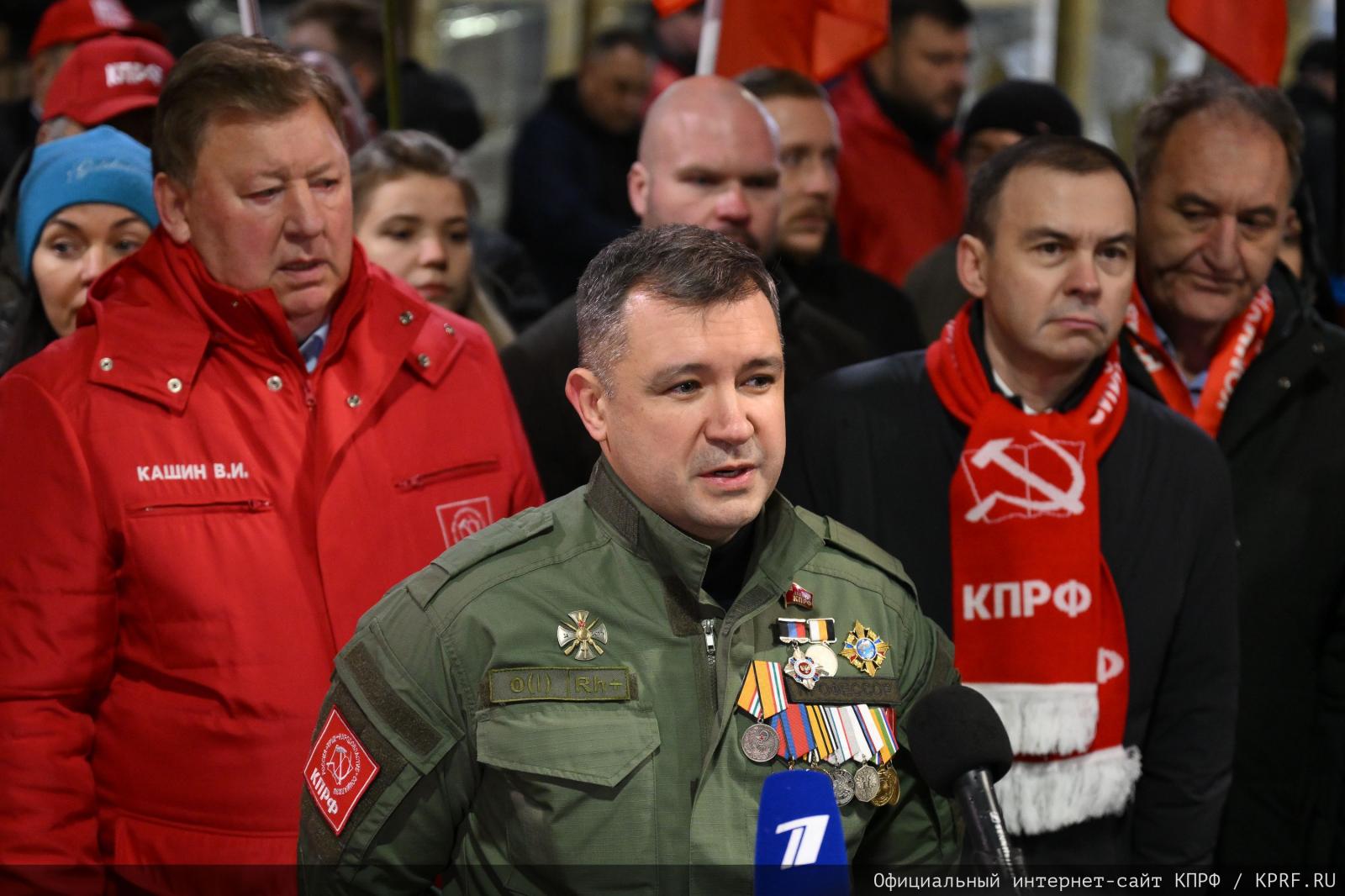 На митинге также выступили заместитель Председателя ЦК КПРФ Владимир Кашин, первый зампред ЦК Юрий Афонин, лидер московских коммунистов Виктор Царихин, заместитель Председателя Народного Совета ДНР Николай Сытов, первый секретарь Тверского обкома КПРФ Людмила Воробьева, председатель Союза пчеловодов России Валерий Михеев, военнослужащие.