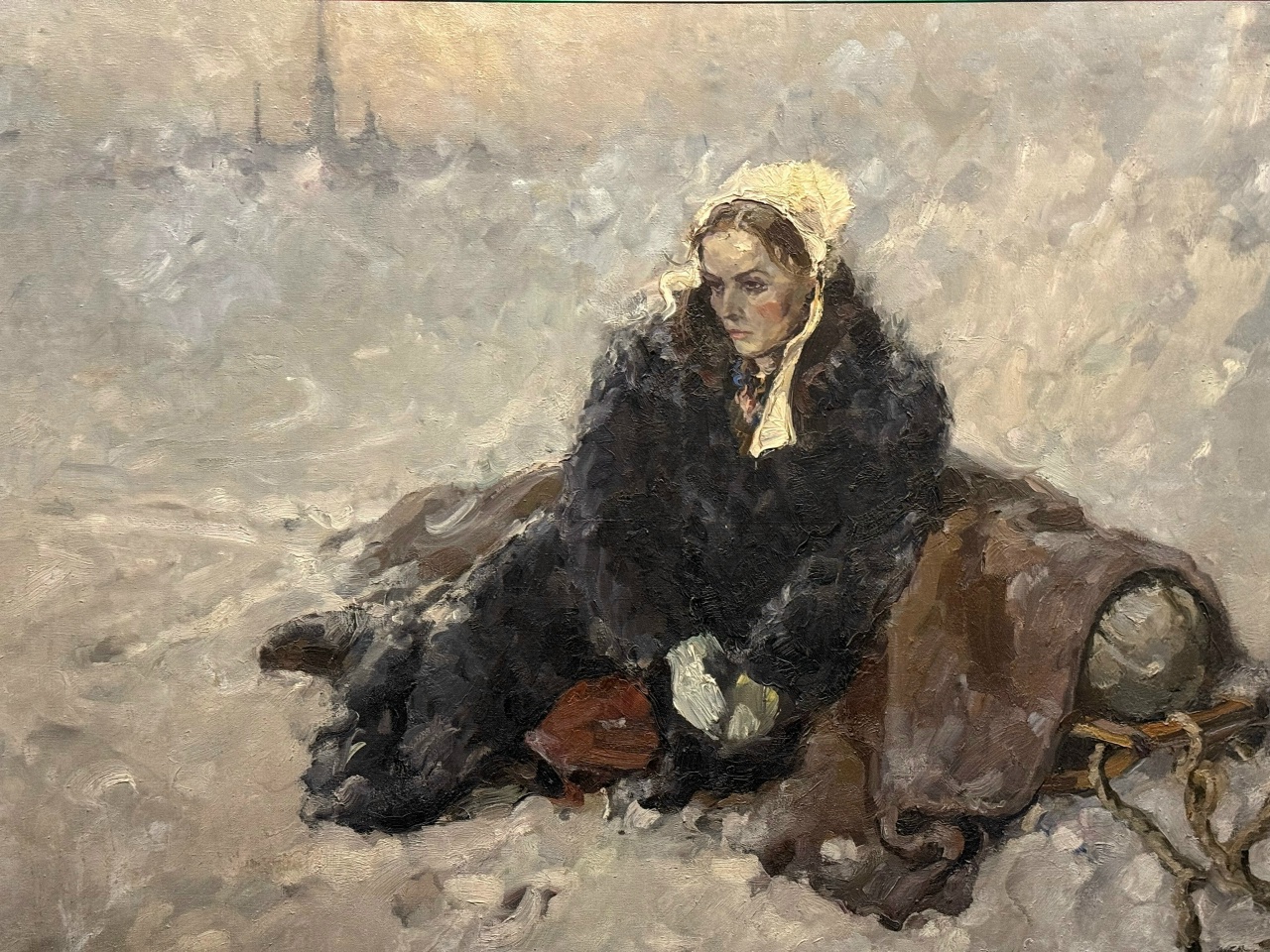 И мы видим запись в дневничке-23/12-1942: «у Николаева.» Это первый раз, когда она пришла к нему позировать. Так, в 1942 году в блокадном Ленинграде, была создана картина «Пурга», которую ленинградцы восприняли как символ блокадной жизни, как несломленную волю ленинградцев. Картина окончена, но художник не хочет отпускать модель!