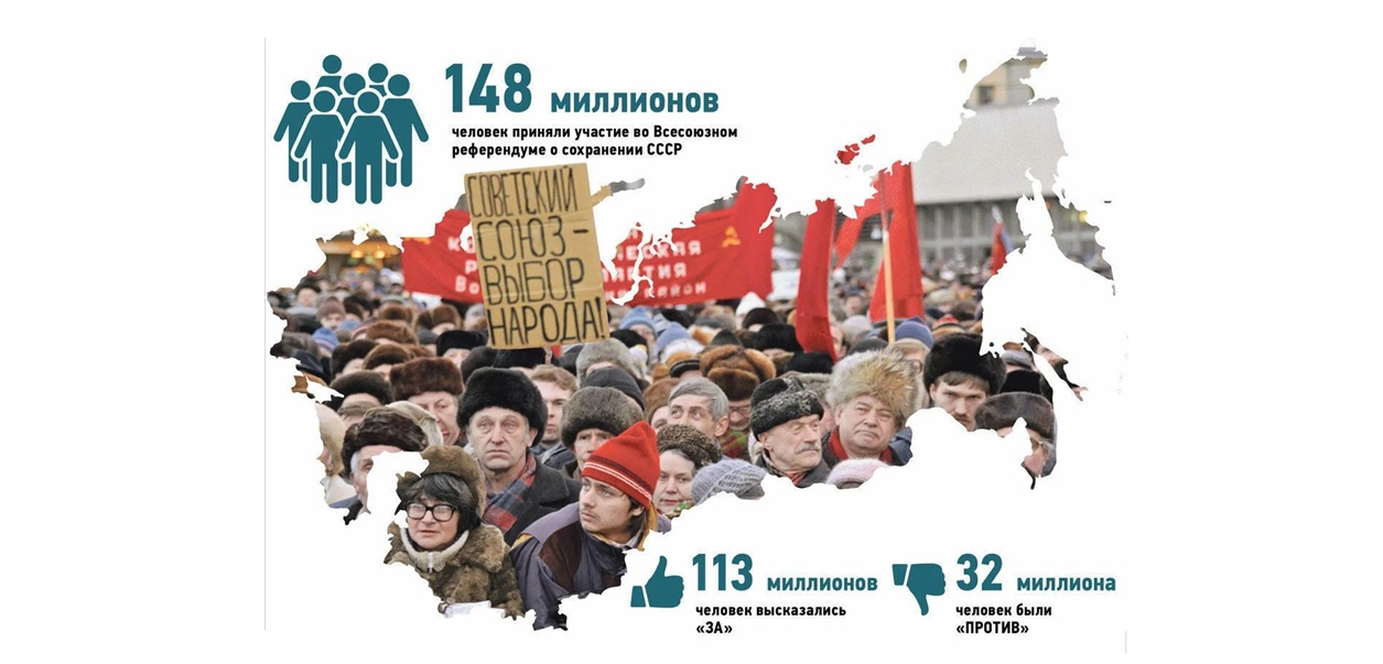 Одним из ярчайших примеров таких событий является проведенный 35 лет назад, 17 марта 1991 года, референдум о сохранении СССР, а по сути, веками складывавшейся исторической России, на котором народы нашей страны однозначно высказались за сохранение её территориальной целостности. Произошло это на свободном, по нынешним временам абсолютно открытом, демократическом голосовании, на котором каждая сторона могла без всякого административного ресурса агитировать за свою точку зрения. В государственном праве референдум считается высшей, прямой формой демократии, и поэтому к нему прибегают весьма редко, поскольку народ может проголосовать совсем не так, как хотелось бы властям.