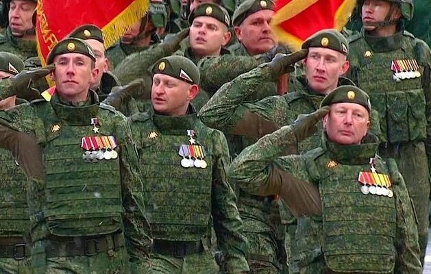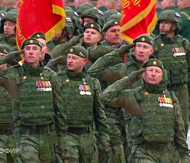 На фото: Участники СВО на Параде Победы. Кадр из эфира Первого канала