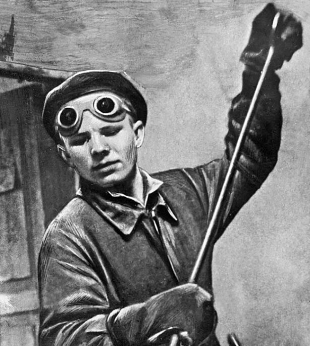 На фото: Юрий Гагарин – учащийся Люберецкого ремесленного училища во время практики. dzen.rugagarinmuseum