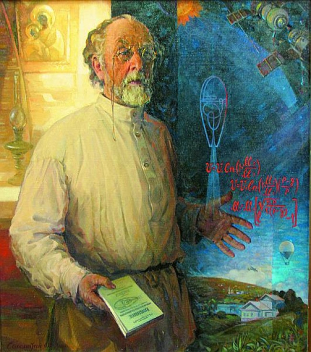 На фото: Портрет К.Э. Циолковского, худ. А.И. Соломатин. Из открытых источников