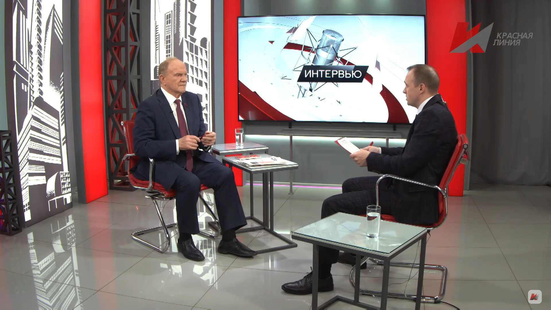 – Здравствуйте, уважаемые телезрители! Гость нашей студии сегодня – Председатель Центрального Комитета КПРФ Геннадий Зюганов. Геннадий Андреевич, здравствуйте!