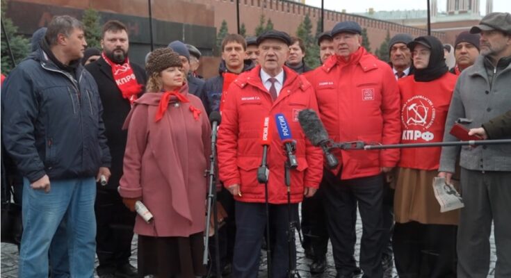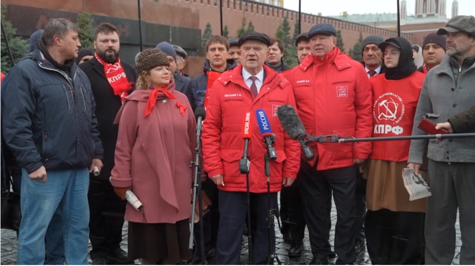 Колонну участников мероприятия возглавил Председатель ЦК КПРФ, Руководитель фракции КПРФ в Государственной Думе Г.А. Зюганов. На Красной площади состоялся брифинг лидера Компартии. Обращаясь к журналистам, он, в частности, заявил: