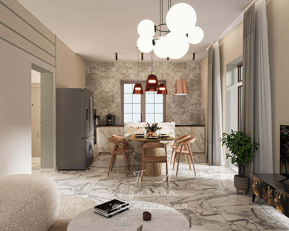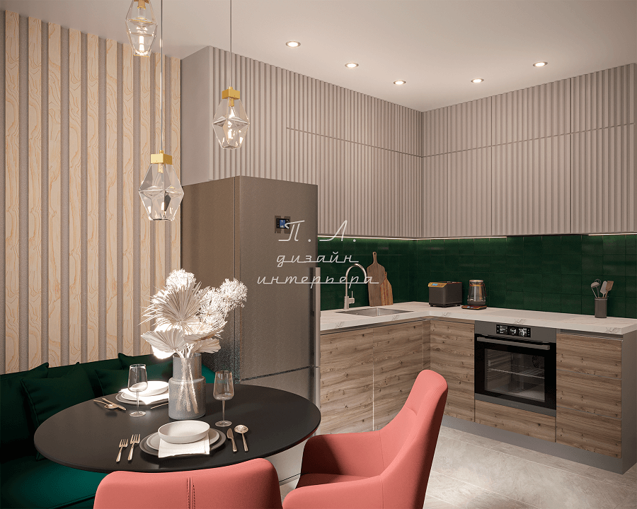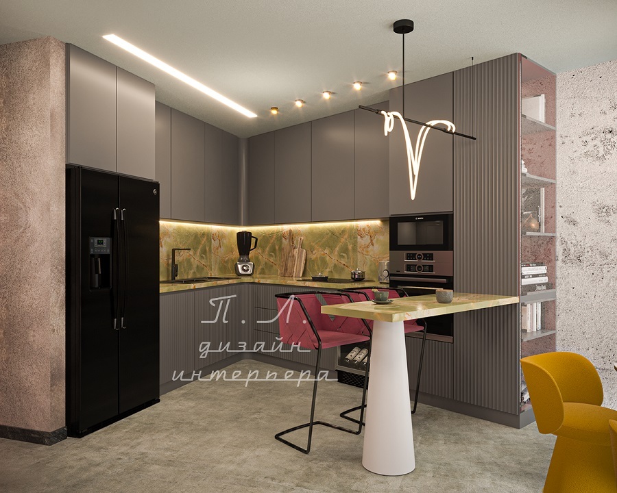Наша студия разрабатывает комплексные дизайн-проекты с фотореалистичной визуализацией, подбором материалов, строительными чертежами, мебели и светильников. Мы продумываем, как будет выглядеть кухня, какие материалы и цвета подойдут для нее. Как кухня сочетается с отделкой фартука и стен, а также для столешницы также будет видно на визуализации. Комплексный дизайн решает проблему выбора кухни и облегчает задачу клиента.