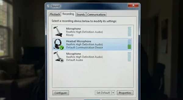 Запустите классический апплет управления звуком, введя команду mmsys.cpl в диалоговом окне «Выполнить» (Win+R). Перейдите на вкладку «Запись», где отображается список всех доступных аудиоустройств компьютера. Кликните правой кнопкой мыши по аппаратному компоненту гарнитуры и выберите пункт «Использовать устройство связи по умолчанию». Появление зеленого значка с галочкой подтверждает успешное назначение приоритета маршрутизации аудиосигнала, что заставляет сторонние программы использовать именно этот микрофон.