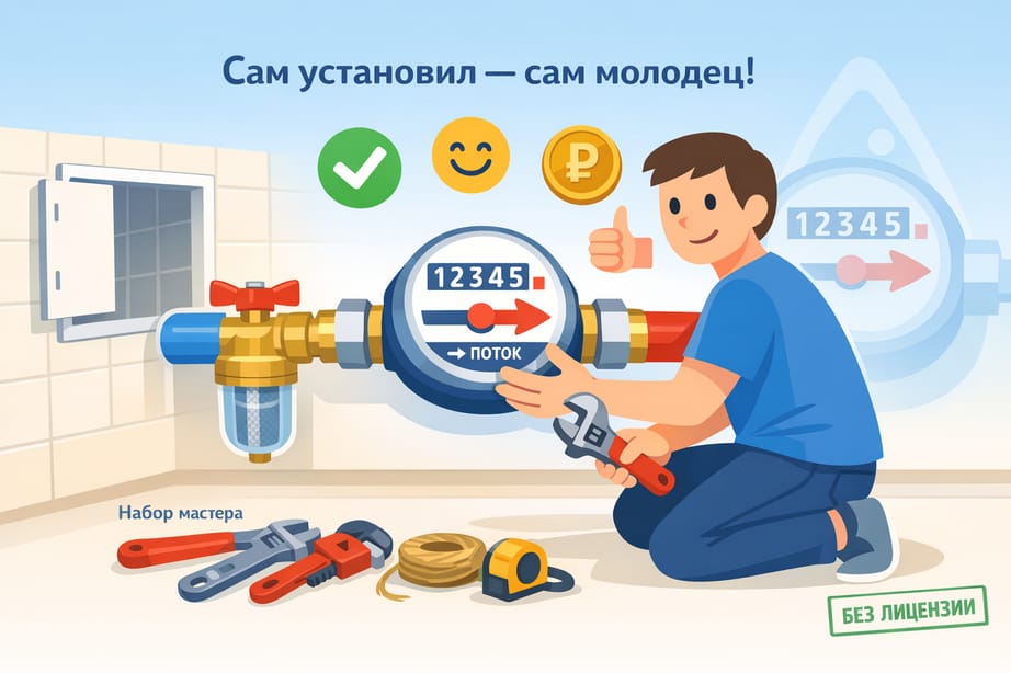Вот и всё — теперь ты знаешь, что установить счетчик воды самостоятельно — задача абсолютно реальная. Не нужно быть дипломированным сантехником, не нужна загадочная лицензия. Нужны руки, голова и пара часов свободного времени. Зато экономия ощутимая: не платишь мастеру 3000–5000 рублей, получаешь навык на всю жизнь и гордость за себя.