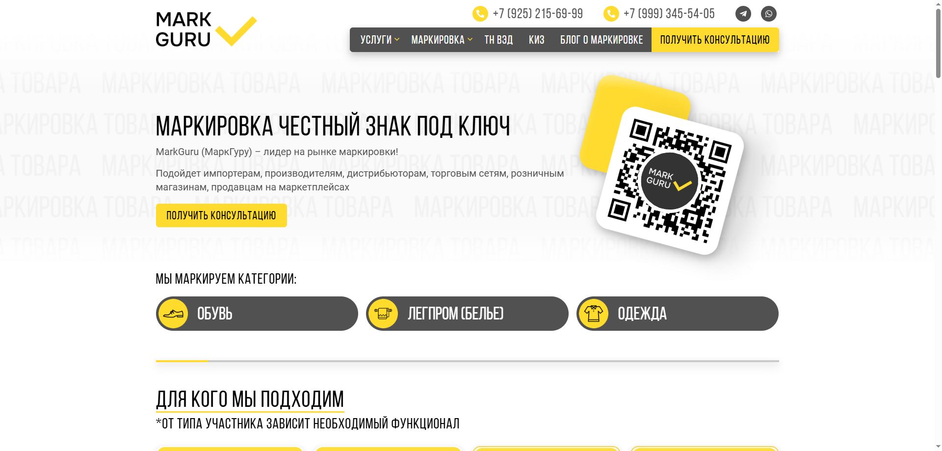 MarkGuru предлагает полное внедрение системы «Честный Знак» за 3–5 дней. Сервис подходит всем участникам цепочки — от импортеров до ретейлеров и селлеров. Команда берет на себя регистрацию в системе, получение УКЭП и GTIN, настройку ЭДО и маркировку остатков. Особенно выделяется поддержка 24/7 и помощь с УПД — ключевой элемент документооборота при работе с маркированными товарами.
